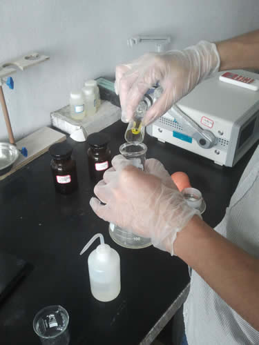 (2)空白试验,用移液管准确吸取50ml蒸馏水到三角瓶内,加入5%铬酸钾指示剂1ml,并用0.01mol/L的硝酸银标准溶液滴定至呈现砖红色为终点,记录消耗的硝酸银标准溶液的毫升数(V2)。